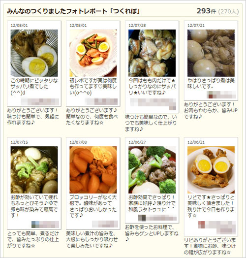 レシピ特集のほかに、年間を通してミツカンが開発したレシピを公開する形で週に1回新しいメニューを公開している「つくれぽ募集」があります。クックパッドは検索数も多いですし、ユーザーさんも多いので、バナーからブランドサイトへの流入もそれなりにあります。つくれぽでいただいたユーザーさんのコメントはレシピ開発の参考にさせていただいています。