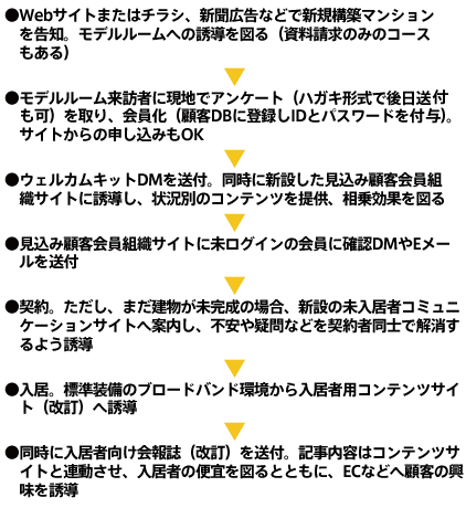 ユニークなのは、未入居者へもきっちりフォローをしていること。仮に工事の納期が遅れたとしても、コミュニケーションを絶やさないことがポイントです。また、正式契約まで様ざまな手続きが必要で、途中で不安になったり面倒になり、この段階で離反したりする事例は多いもの。ここで気を抜かないことが、コンバージョン率を上げ、離反率を下げる大きな要因になっているのです。