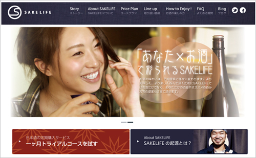 日本酒の定期購入サービス「SAKELIFE」では、3,000円の「ほろ酔いコース」と5,000円の「ぐい呑みコース」を用意し、おいしいお酒・酒器・メールマガジンを定期的に提供している。