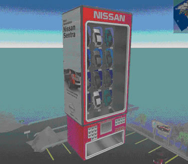 2つの島の設置/島内での車試乗/カラーバリエーションの確認(車の自動販売機で自由に選ぶことが可能)