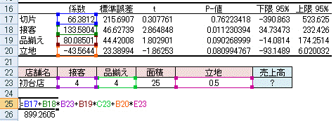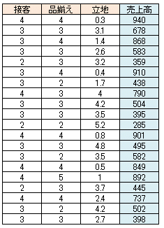 売上高=66.38+133.58×接客+80.09×品揃え-43.56×立地