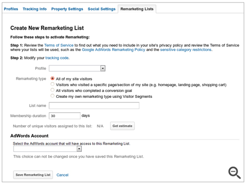 上の画面は、新規にリマーケティングのリストを作成する画面です。ここでは、正規表現を使った詳細な指定も一部で可能となっています。