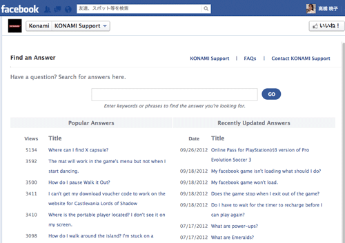 コナミ:Q&Aをソーシャルメディア上で公開し、他のユーザーにも見てもらう