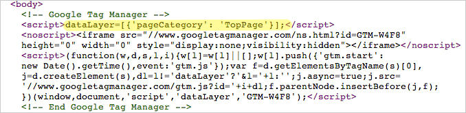 ここでは、DataLayerの変数名にpageCategoryを使いました。DataLayerで使用する変数名は任意で命名して結構ですが、後でわかりやすいように命名規則も公開されています(Google Developersのリファレンス参照)。できる限り、この提案に従ったほうが、あとで他の人がメンテナンスするときなどわかりやすくなります。