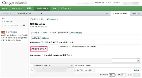 (3)Google アナリティクス と AdWordsアカウントのリンク(利用規約にも同意)