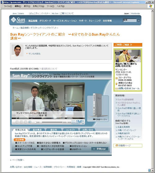 鈴木 「はい。サン・マイクロシステムズでは、元々オンライン・セミナーを公開しているのですが、九州のひとりの営業部員が自分でSun Rayという自社製品の紹介ビデオを作ったんです。彼は自らがナレーターとなって解説して、日本語版と英語版のビデオを制作しました。それをYouTubeに掲載しました」