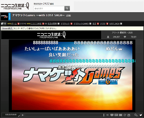 「『ロストサーガ』という多人数で楽しめるオンライン・アクションゲームで、生主さんがNo.1ゲームプレイヤーの座を賭けて対戦する、『ナマケットGames with ロストサーガ』を2012年7月21日に実施しました。