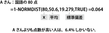 以上から結論は、Aさんの国語の80点のほうがより評価できる!となります。