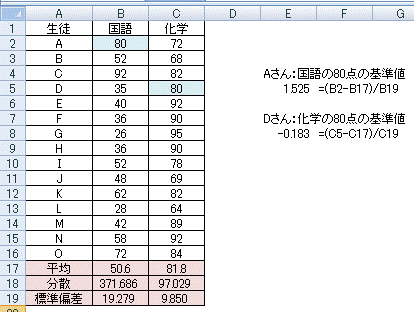 平均点が違う国語/化学のテスト80点を評価するには? Excel関数「STANDARDIZE」でデータを基準化しよう