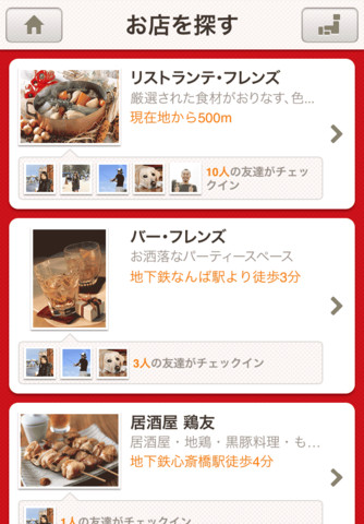 ユーザーの友人がチェックインしているお店やユーザー自身がチェックインしたお店に類似したお店が検索結果一覧の上位に表示されるため、友人との繋がりやユーザ自身の嗜好でお店を検索することができ、行きたくなるお店を探しやすくなっています。