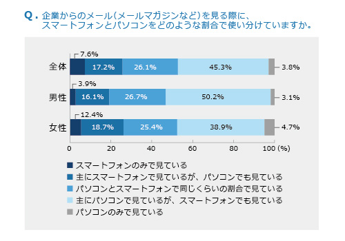 では、企業からのメールを閲覧する際には、スマホとPCをどのような割合で使い分けているのでしょうか。