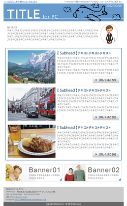 1.は、PCに向けて配信している通常のPCメールを、スマホでの閲覧を意識したデザインに変更したものです。PC・スマホのどちらで閲覧した場合にも、同じコンテンツが同じように表示されるメールです。
