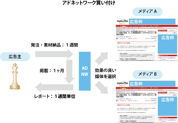購入までには広告主(もしくは代理店やメディアレップ)と媒体社でのスケジュール確認、単価交渉、広告画像(バナー)・リンクURLの送付等多くの手続きが必要で、また様々な媒体を購入する場合には各媒体社とのやりとりがあるため、余計に煩雑になるという課題がありました。