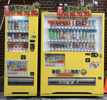 「自動販売機」です。道にひっそりとたたずんでいる自動販売機ですね。Webサイトと自販機の共通点はたくさんあります。来訪したユーザに満足してもらうために商品ラインアップを増やす、ユーザに応じて自動的に商品が変わるようにする、ボタンを並べ替えて買いやすくする、といった様々なアプローチの工夫があげられます。基本的に自販機(Webサイト)のアプローチは効率化・最適化です。特にWebではデータが豊富に得られるので、このようなアプローチは有効に機能します。