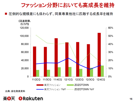 ちなみに楽天市場における12年のファッション関連商材の流通総額は3,567億円。右肩上がりを続けており、ファッションECサイト「ZOZOTOWN」の約4倍の規模だ。