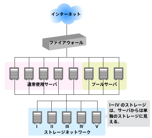 nonstop-VPSの概念図。処理が溢れた場合はプールサーバのパフォーマンスを利用する。