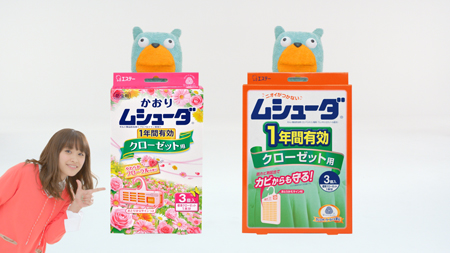 例えば今、モーニング娘。OGの高橋愛さんを起用した「かおりムシューダ」のCMを放映していますが、香りつき防虫剤では当社は競合他社と比べてシェアが低いという課題がまずありました。“ニオイがつかないムシューダ♪”は、長年のサウンドロゴの功績で浸透している一方、「防虫剤独特のニオイはつかないが、いい香りがついているムシューダ(=かおりムシューダ)もある」ことが伝わっていなかったのです。