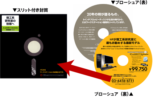 クライアントは日本HP(日本ヒューレット・パッカード株式会社)。ご存知の通り、グローバルなコンピュータメーカーです。今回のDMは、同社のワークステーションを販売することが目的であり、このDMを先行して送ってテレマ部隊がフォローするという手法でした。