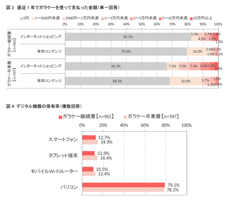 ガラケー継続層、ガラケー卒業層、それぞれのデジタル機器の保有状況は、タブレット端末、モバイルWi-Fiルーター、パソコンにおいて保有率の差は3%以内とほぼ変わらず、デジタル機器に対する興味・関心は変わらないと推察されます。