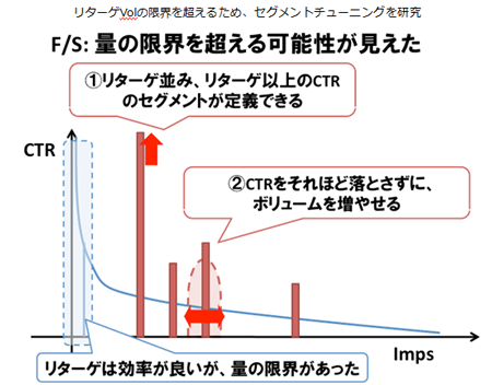 次に着手したのが、セグメントのチューニングだ。リターゲティングの効率は非常に高いが、量の限界があるため、別途ボリュームを増やす策が必要だと感じたという。