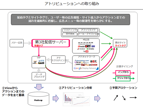 まず同社が最初に取り組んだのは、DMPによるターゲティング。Cookie利用の研究から始めたが、意外にもハードルとなったのは情報セキュリティーの問題であった。プライバシーポリシーの策定、データの管理部門についてなど、足掛け半年以上も社内の各部門との議論を重ねて調整を図った。「最終的には経営判断で決定した。個人のデータを扱うには法務やカスタマーサポートとも密な連携が必要だと実感した」と須藤氏は語る。