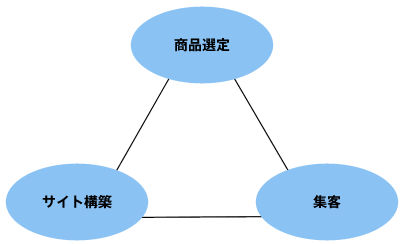 今まで紹介した「売れないサイト」の例からもわかるように、ドロップシッピングで売るためには、「サイト構築」「商品選定」「集客」の3つのポイントを抑えておく必要があります。3つをバランスよくこなせるようになってはじめて売れるようになると考えてください。