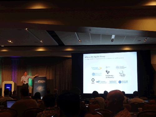 「eMetrics」の2つ目のテーマは、教育現場におけるデータアナリティクスについてです。基調講演では、フェニックス大学における高度なデジタルマーケティング教育プログラムが事例として紹介されました。