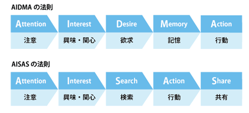 つまり、テレビCMなどのマス広告やバナー広告などが、Attention(注意)からInterest(興味・関心)に至るプロセスの起点となっていて、その後のAction(行動)につながっていると考えられるのです。