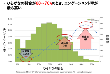 漢字・ひらがな・カタカナの利用比率で反応が変わる。ひらがなは気持ち多めが吉。