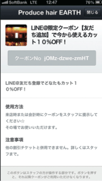 「今だけお得」のようなキーワードは、利用を検討中のお客さまに強い効果を発揮します。この方法をLINE@でも活用していきます。実際にお店に来てくださったお客さまに対して「この場でLINE@の友だちになってもらえれば10%お値引きいたします!」 と接客中に声掛けしてみましょう。LINE@では「友だち追加時に全員もらえるクーポン」を用意することができるので「入会キャンペーン」のような取り組みも効果的です。