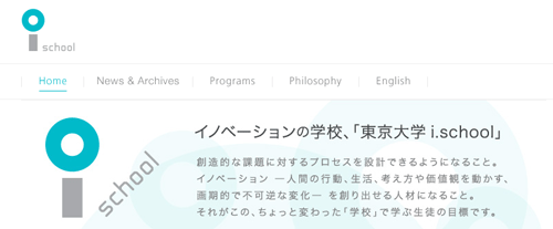 その草分け的存在は、東大の全学横断プロジェクトであるi.school(アイ・スクール)でしょう。2009年6月に立ち上がったi.schoolのウエブサイトには、イノベーションの学校「東京大学i.school」と題して、「創造的な課題に対するプロセスを設計できるようになること。イノベーション---人間の行動、生活、考え方や価値観を動かす、画期的で不可逆な変化---を創り出せる人材になること。それがこのちょっと変わった“学校”で学ぶ生徒の目標です」と記されています。