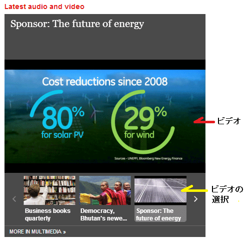 マルチメディア編集欄では動画/音声記事が20本掲載されている。この例では、その中の1本がGEが提供する動画であった。