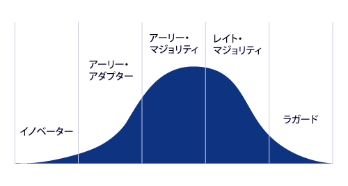 それ以外の大部分の人、「アーリー・マジョリティ」や「レイト・マジョリティ」を味方にする特効薬はありません。しかし、会社の大部分はこの人たちで構成されていますから、彼らの支持を得ることは避けては通れません。地道なアプローチが必要になるでしょう。メリットを説き、初期段階で活用してもらい、そこでの実績を上手にアピールしながら活用範囲を拡げる、というアプローチです。