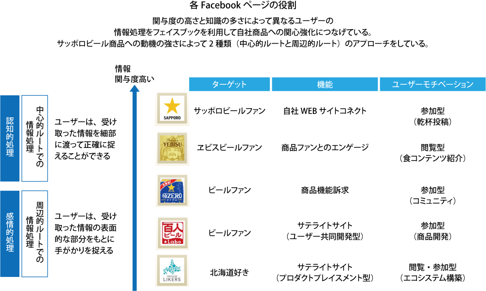 ヱビスビールのFacebookページでは、ヱビスファンとの深い絆の構築と強化を目的に運営しています。プリン隊がゆく。。。(サッポロ極ZEROのFacebookページ)では、プリン体を気にされてビールを避けている方とのコミュニティを作り、健康的にお酒を楽しめる関係を構築することを目的としています。