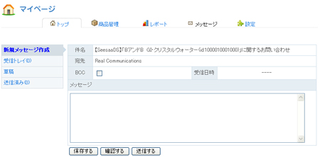 仕入れた商品に関して不明な点が出てきてしまった場合には、メッセージ機能を使って、商品提供元(サプライヤ・メーカー)とメールベースでやりとりをすることができるようになっています。
