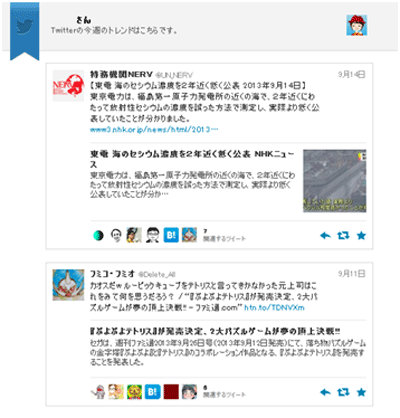 この結果により、ストーリー訴求のメールコンテンツにおいて、全体のクリック率向上とトラフィック向上を同時に実現するアプローチを実践することになる。つまり、ストーリーだけを訴求するのではなく、そのストーリーに関連するTwitterユーザーのツイートも同時にみせるという手法を取り入れた(※下記イメージ参照。最近受け取るTwitterからのメールは、下記のようにニューストピックの訴求に必ず誰かのツイートの様子が同時に紹介されている)。