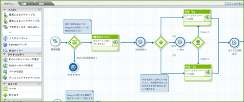 Responsys Interact Marketing Cloud管理画面上のフローチャート