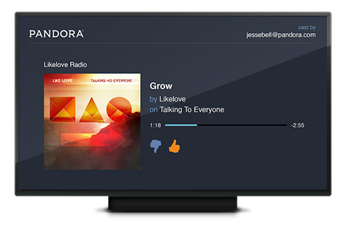 そしてPandoraがいま力を入れているのは、リビングルームへの進出です。Pandoraは現在スマートTVやBlu-rayプレーヤー、セットトップボックス、PlayStation 3やXbox 360などのゲームコンソール、Sonosなどのコネクテッド・オーディオ・プレーヤーなどと連携し、スマホやPCと同じ設定を変えることなくネットラジオを提供しています。最近ではPandoraは、グーグルが今年に入って発表したホームエンタメ用デバイスのGoogle Chromecastとの連携も発表しています。