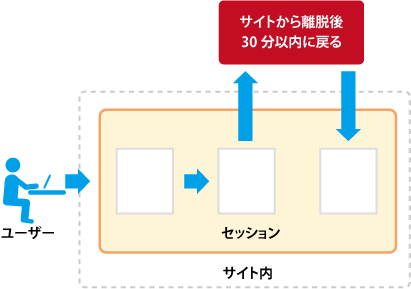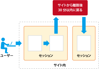 今までのga.jsではサイトを離脱してもセッション期間内(デフォルトでは30分以内)にサイトに戻ってくれば同一セッション内の行動として計測されていました(ただしCookie内の参照元情報が上書きされれば30分以内でもセッションは切れます)。