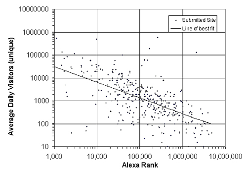 Alexaのランキングと、実際にアクセスしたユニークビジター数の相関を、さまざまなサイトの運営者からデータを集めることで求めようというプロジェクトです。