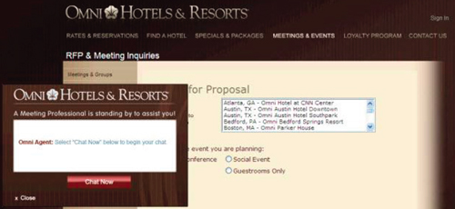 そんなオムニホテルのウェブサイトもライブエンゲージを導入してる。ホテル側のニーズは、ウェブサイト経由の新規顧客の獲得。また、パッケージ予約や購入時に電話やEメールで顧客を待たせる時間を短縮すること。ウェブ上の接客にも力を入れることで、競合との差別化にもなると考えた。