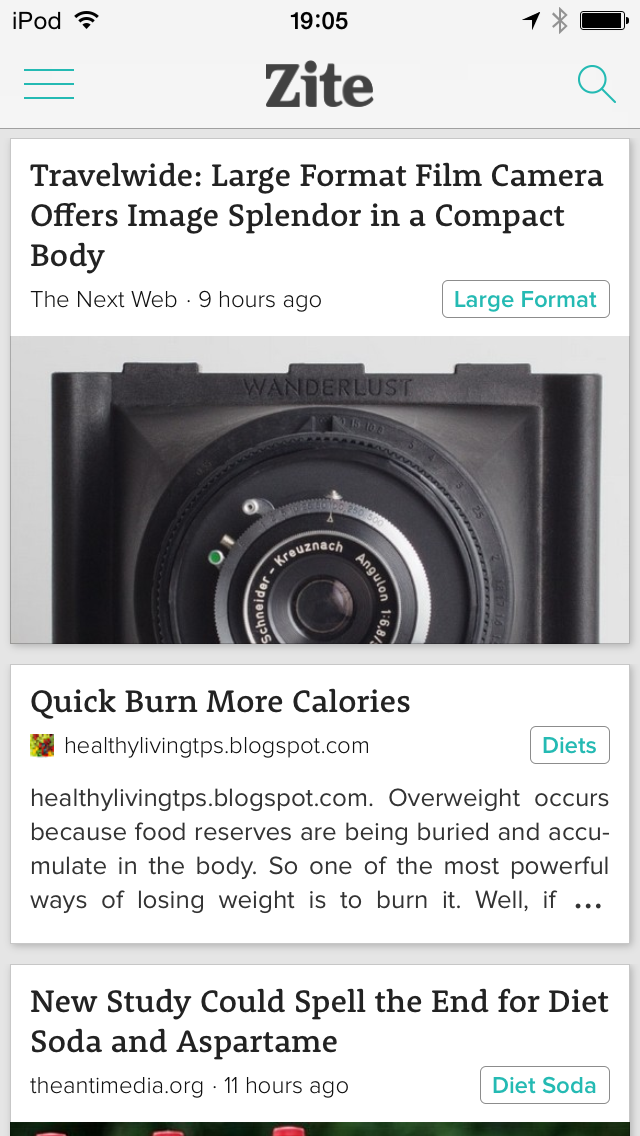 例えば、iOSアプリのZiteでは、トップページで左側にあったスライドメニューが、下層では消えてなくなってしまいます。つまり、スライドメニューはトップだけでしか見ることができません。
