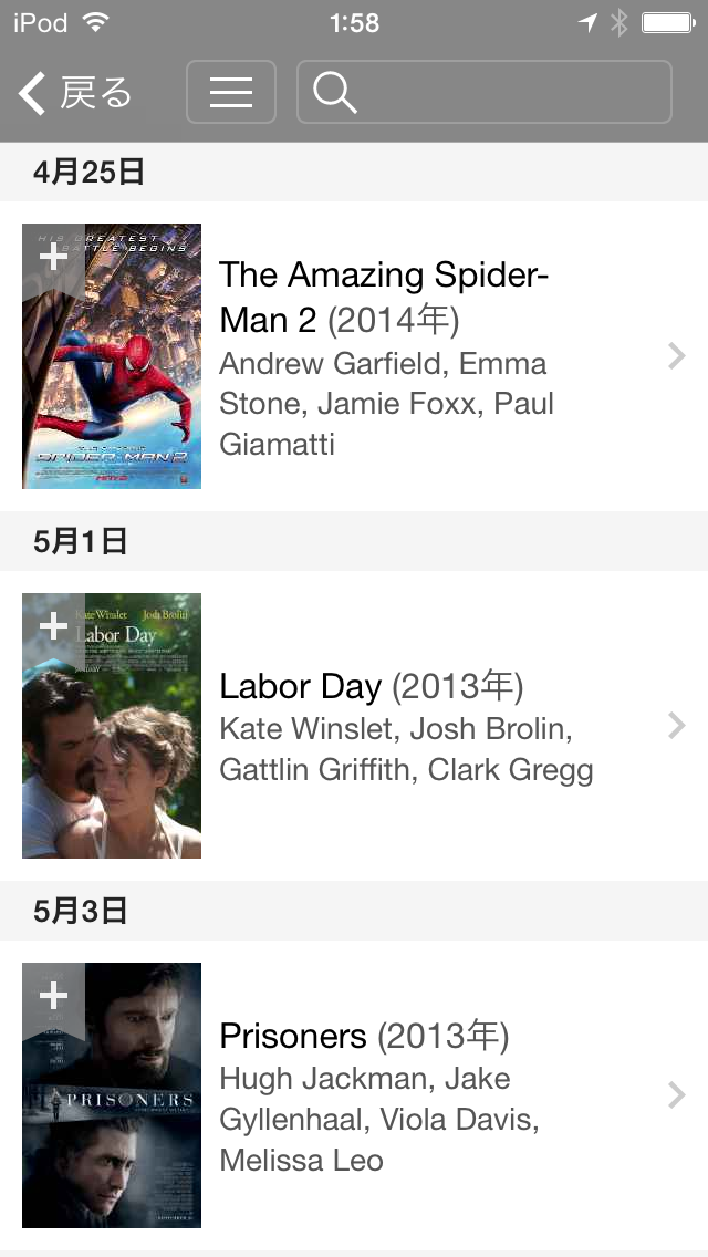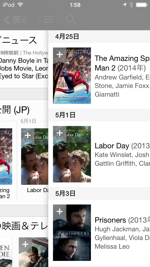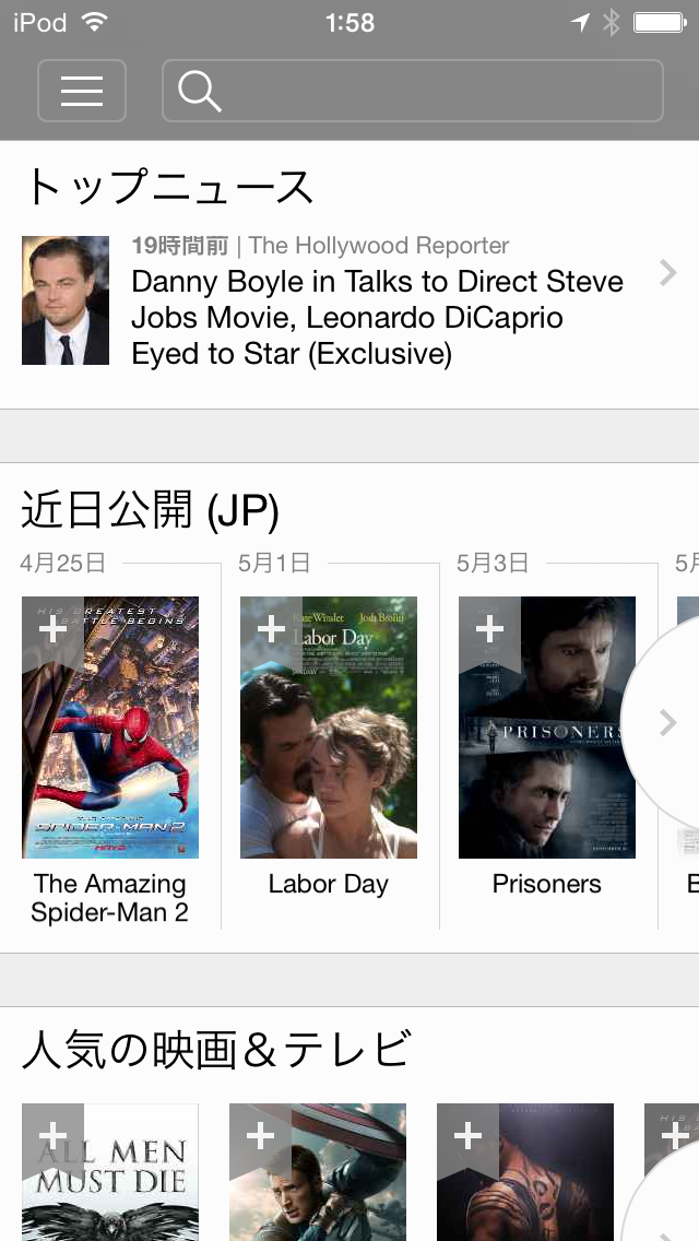 iOSアプリのIMDbでは、トップページから下層に進むと、メニューボタンの位置が微妙に変わってしまいます。左右スライドでメニューが展開されたりもしません。