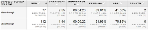 広告に接触してサイトへ来訪した方の中で、広告をクリックして訪問した方(クリックスルー)は112訪問。広告を見たけどクリックせずに、何かの機会で訪問した方(ビュースルー)は、77訪問と全体の40%ほどがビュースルー経由の来訪でした。