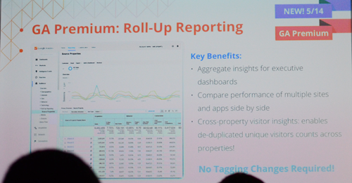Google アナリティクスは、これまでエグゼクティブ向けのハイエンドなレポート画面というものは特に存在しなかったが、このロールアップレポーティングはそれを意識したエンタープライズ向けの機能である(プレミアム版ユーザのみが対象)。