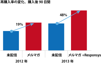 また、メール配信者の再購入率にResponsys導入前と導入後で大きな差が表れています。サイト全体のリピート率も向上しており、これらのメール効果が単なる購入予定者の前倒し購入ではなく、サイト全体の売上向上に寄与していることが確認されました。