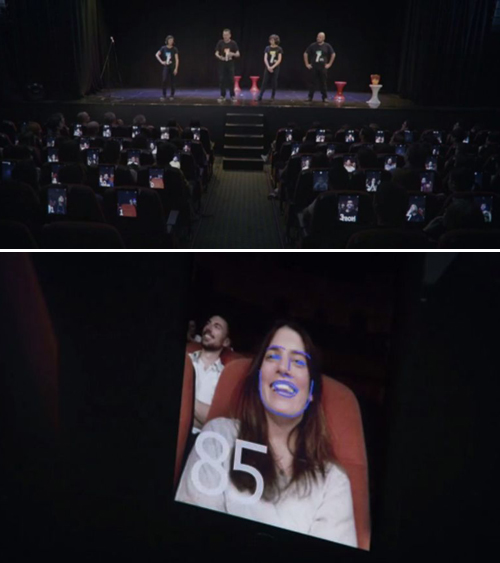 それが、顔認証技術を活用した観劇料の後払いシステムです。観客はタブレットが設置された座席に座って、芝居を見るだけ。システムがお客さんの表情を判別して、笑ったときに課金をします。つまり、観客は笑った分だけ観劇料を支払うというわけです。もちろん入場は無料。しかし、劇場の売上は大幅に上がったそうです。