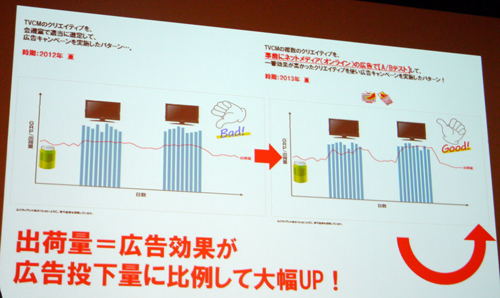 テストを行ったクリエイティブでマス広告キャンペーンを行ったところ、広告に比例して出荷量がアップ!