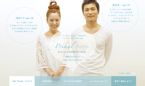 物語は、結婚式が決まっているカップルのお話。その結婚式までの紆余曲折のストーリーが毎週更新される。その間も2人はブログを書いていて、ストーリーと同じ流れでお互いの心情を覗き見できる。最終的にはその結婚式にも参列できる。という仕組み。