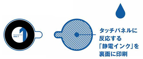 何か新しいことはできないか、パートナーである広告代理店に相談したところ静電インクを使った企画の提案を受けたという。これは名前の通り、通電性のある物質を含んだインク。このインクを含んだ印刷物がスマートフォンなどの液晶画面に接触すると、人が指で触った時と同じことを再現できるという。